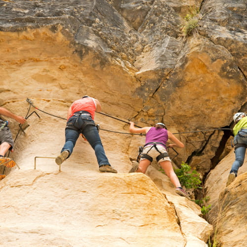 À mi-chemin entre la randonnée et l’escalade, la via ferrata allie divertissement et dépassement. Un parcours situé dans une paroi rocheuse et équipé de câbles et d’échelles, où tout le monde peut s’amuser ! Une activité qui vous garantit sensations, adrénaline et découverte de sites naturels exceptionnels.