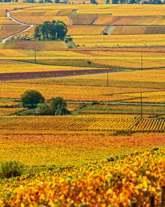 Les vignobles, avec leurs rangs de ceps joliment alignés sont certainement les zones les plus célèbres des campagnes de la région. Les minces rubans du vignoble bourguignon s'étirent des portes de Dijon à la Côte Chalonnaise pour s'élargir dans le Mâconnais. En face, de l'autre côté du fossé bressan, le vignoble du Jura voit le jour. Plus loin, au nord-ouest, autour de Chablis mais aussi d'Auxerre, Tonnerre et Vézelay, le patchwork des vignobles de l'Yonne colore le paysage, pour laisser place, sur les bords de la Loire entre La Charité et Cosne, au pays du pouilly-fumé.