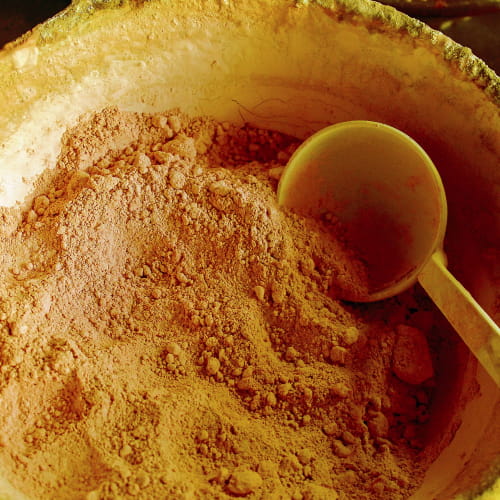 La particularité de la ressource ocrière locale réside en la présence d’une ocre pure à l’état naturel. De l’ocre jaune naît l’ocre rouge, par calcination.