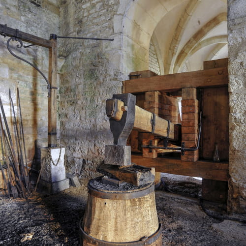 Ce « plus ancien hall d’usine d’Europe » est voûté d’ogives comme le bâtiment des moines est d’égale beauté. Le marteau hydraulique reconstitué rappelle la fulgurante réussite d’un ordre qui sut allier fidélité aux traditions et esprit d’innovation au temps du grand essor des villes.