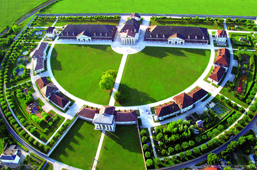 Alimentée par un « saumoduc » de 21 km depuis Salins, la Saline fonctionnait comme un lieu de vie unique, intégrant la production et les lieux d’habitation des ouvriers. Ce projet visionnaire était le cœur d’une Cité Idéale imaginée et dessinée en cercle autour de l’usine par l’architecte Claude Nicolas Ledoux.