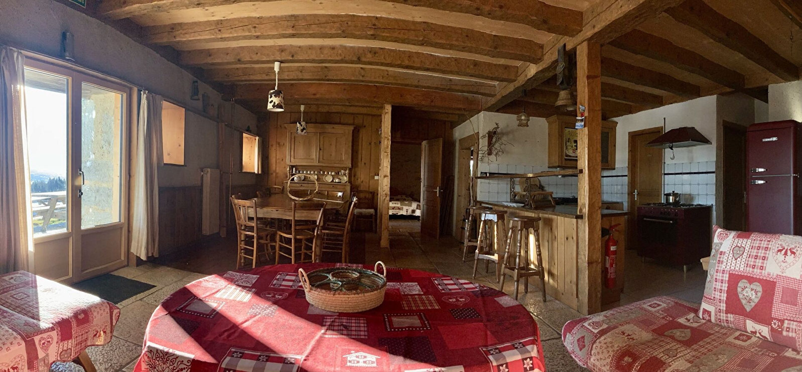 Là-haut sur la montagne du Jura franco-suisse, en pleine nature, grand chalet d'alpage joliment rénové pour 8 à 20 personnes.