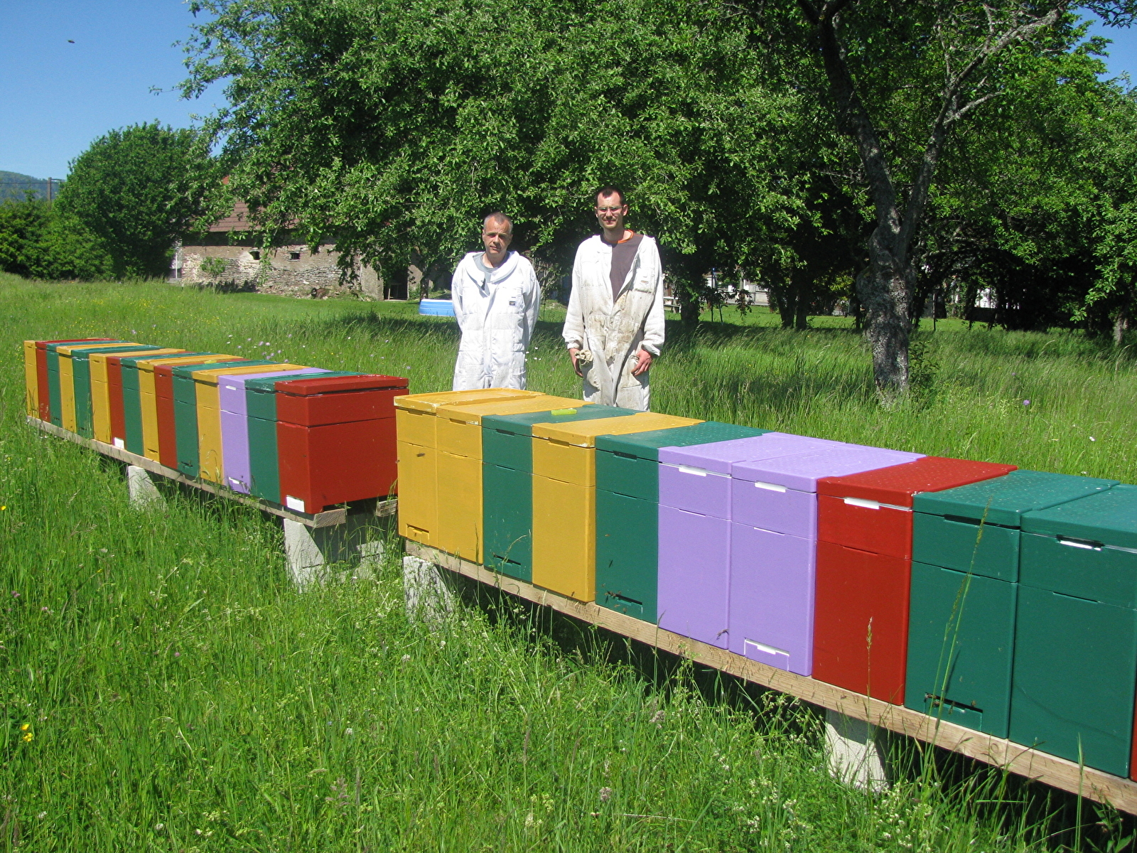 Productions de Miel de fleurs, de ronce, de châtaigner, de tilleul, de sapin du Jura, de miel crémeux, de printemps, de pissenlit, d'acacia, de montagne, de forêt, et parfois e renouée du japon.