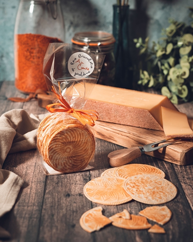 Les produits du Jura et de Bresse sont mis en avant : bricelets au comté (fromagerie de Balanod), au piment de Bresse, au Bleu de Gex ou encore au noix et au miel (Gaec Ecuyer à Digna) !