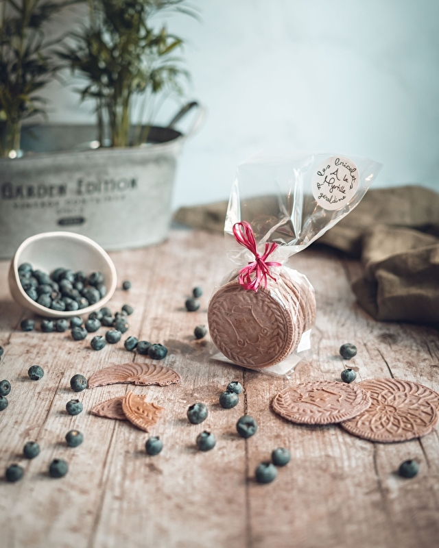 > Des bricelets sucrés délicieusement parfumés : noix et miel, vanille, citron, cannelle, chocolat, myrtille, amande, framboise, café, orange.