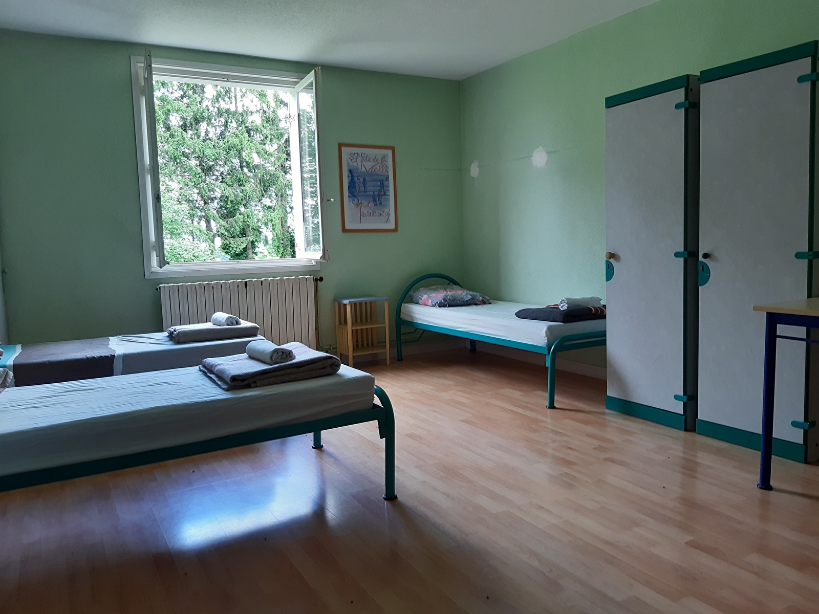 Nous disposons d’un gite de 16 chambres avec 64 couchages et une salle commune, une cuisine collective et un réfectoire.