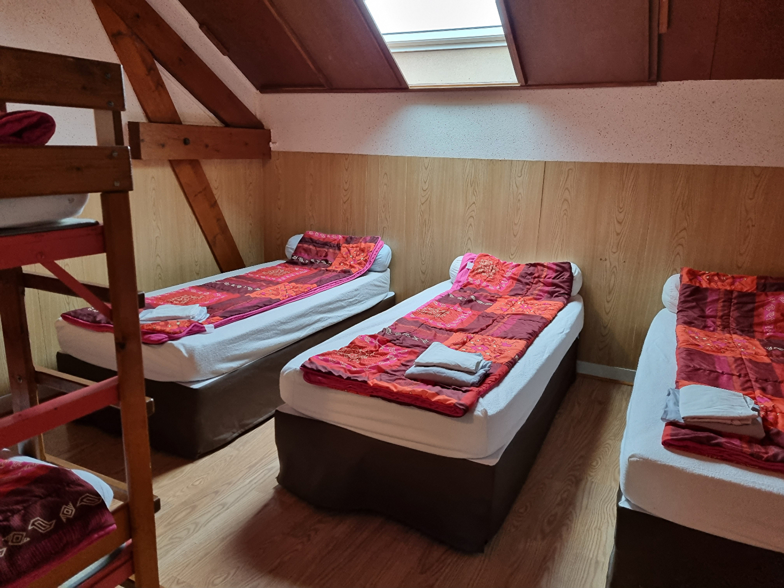 Il est composé de 3 chambres de 4 à 5 lits (dont 2 superposés dans chacune), d'un dortoir composé de 4 box avec chacun 4 lits (2 simples et 2 superposés), de 3 salles de bain (4 douches et 4 WC), d'une salle à manger de 30 places avec un petit espace détente, une cuisine équipée, une salle de jeux avec table de ping-pong, baby-foot, fauteuils et canapé, d'un vestiaire et d'un local sécurisé pour vélos, skis et luges.