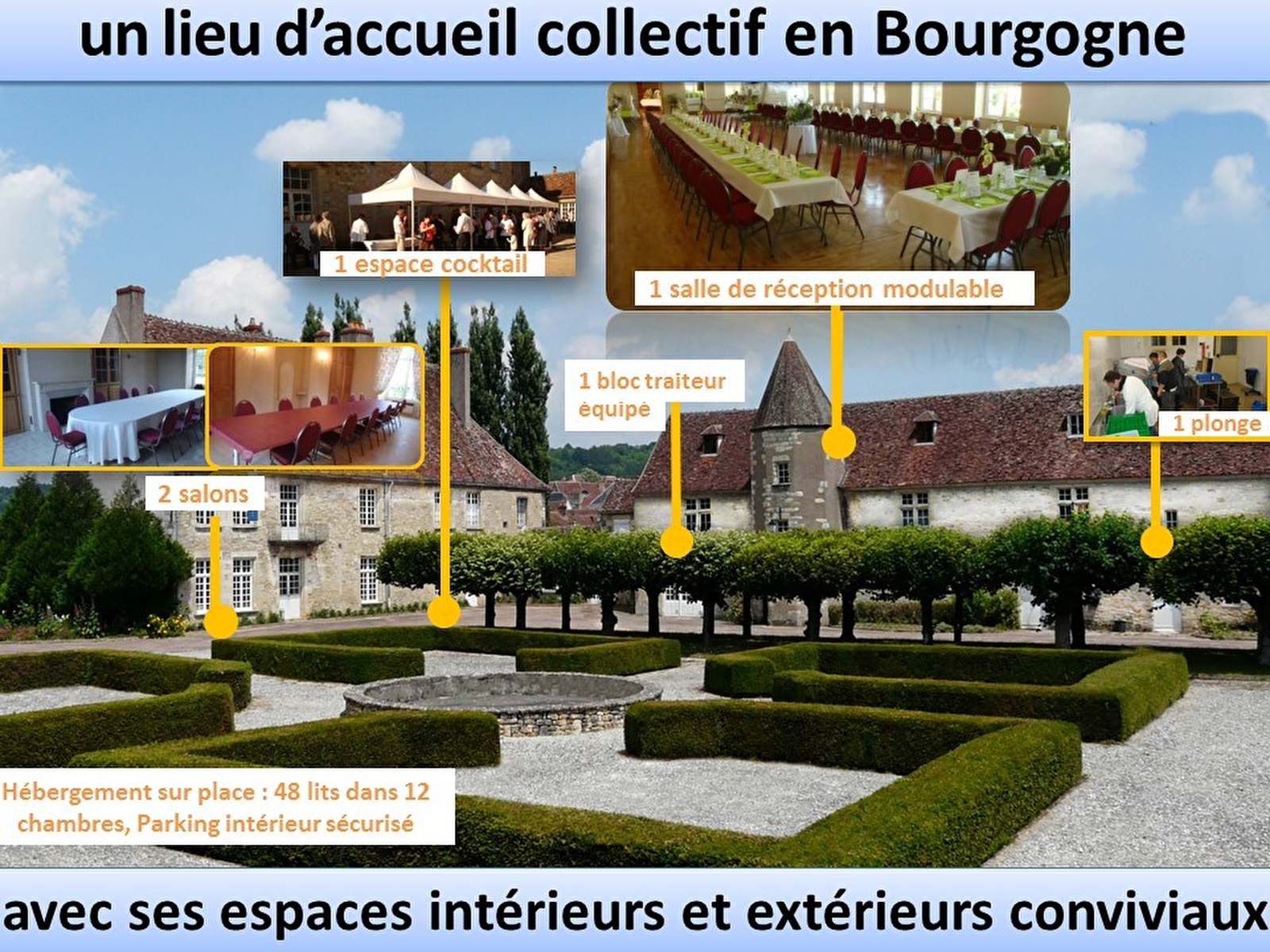 Dans un parc de 2 hectares, cet ancien château du XVe siècle, ancienne propriété des évêques d'Auxerre, entièrement rénové en 2016, permet l'accueil de tous types d'événementiels. Ces espaces ont été aménagés pour accueillir vos séminaires, cérémonies familiales, congrès, soirées dansantes, repas d'affaires... Le château dispose d'une salle de réception confortable et lumineuse (équipée d'un espace traiteur) et deux salons historiques, plus intimes. Un hébergement d'une capacité de 48 personnes vient compléter cette offre.