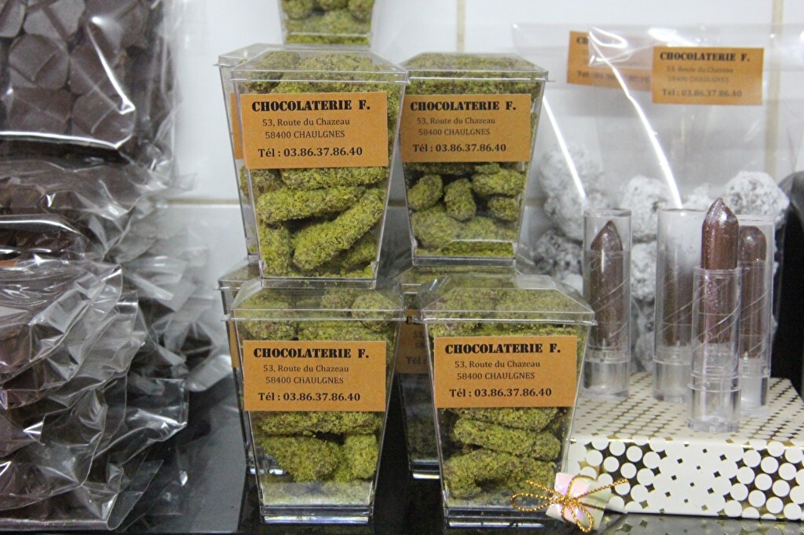La Chocolaterie F. et son créateur Frédéric Benzergua proposent une large palette de chocolats, citons entre autres La Feuilletine (le « F » de la chocolaterie F.), un praliné à l’orange ou à la mandarine éveillera votre palais ou Les Perles du Chazeau, une griotte dénoyautée avec du chocolat en son cœur et une pâte d’amandes. Pour accompagner votre café, le Saint-Antoine est un allié parfait avec sa noix de pécan et son sucre glace. Enfin, place à L’intense, 4 épices, un gout relevé pour un plaisir décuplé. Frédéric Benzargua privilégie les collaborations locales comme la noix de Vielmanay ou le safran de La Charité-sur-Loire.