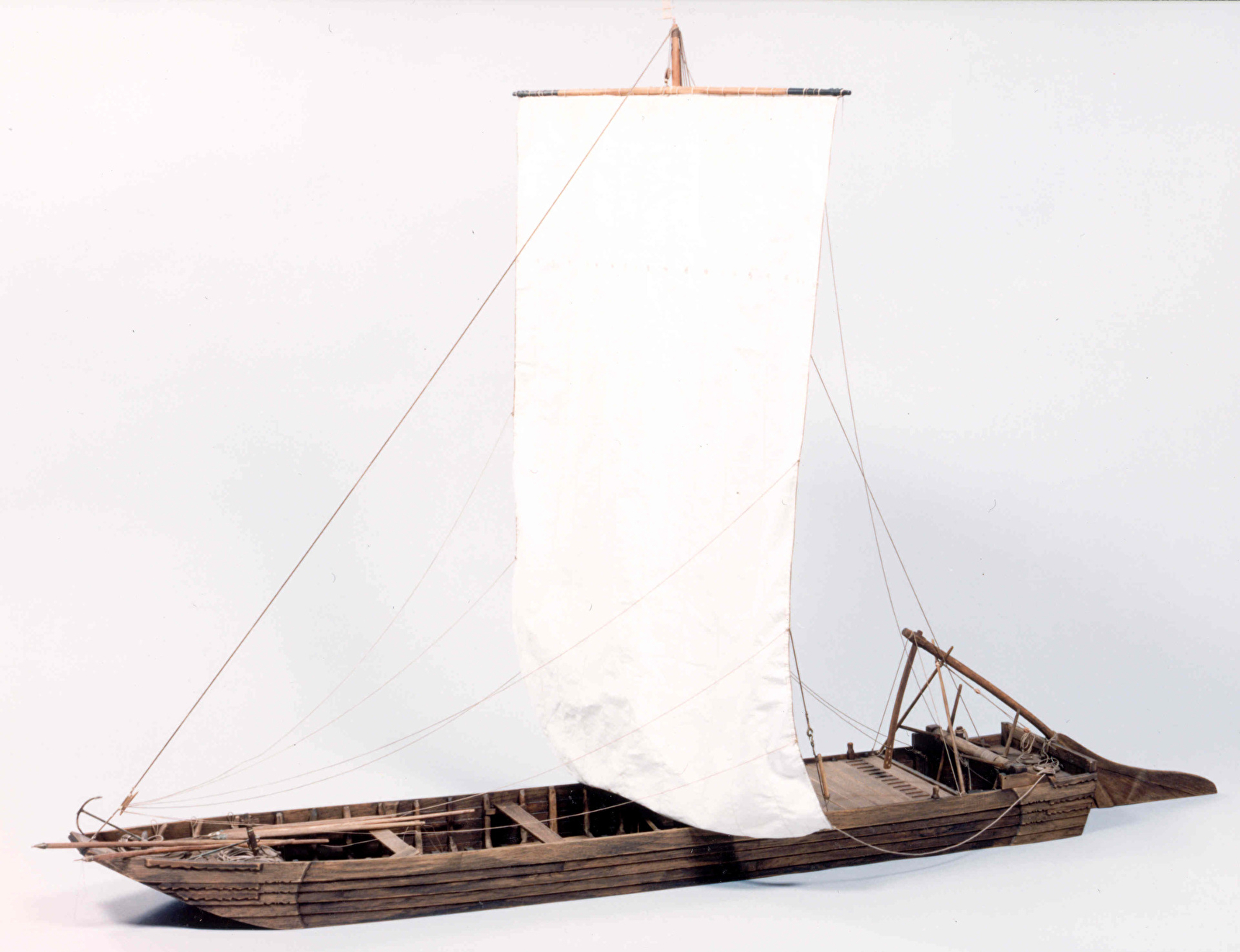 Bateaux et navigation sur le fleuve. Maquette pédagogique de gabarre. Visite de la gabarre "Princesse de Loire" avec l'Association des Gabarriers du haut Val de Loire.