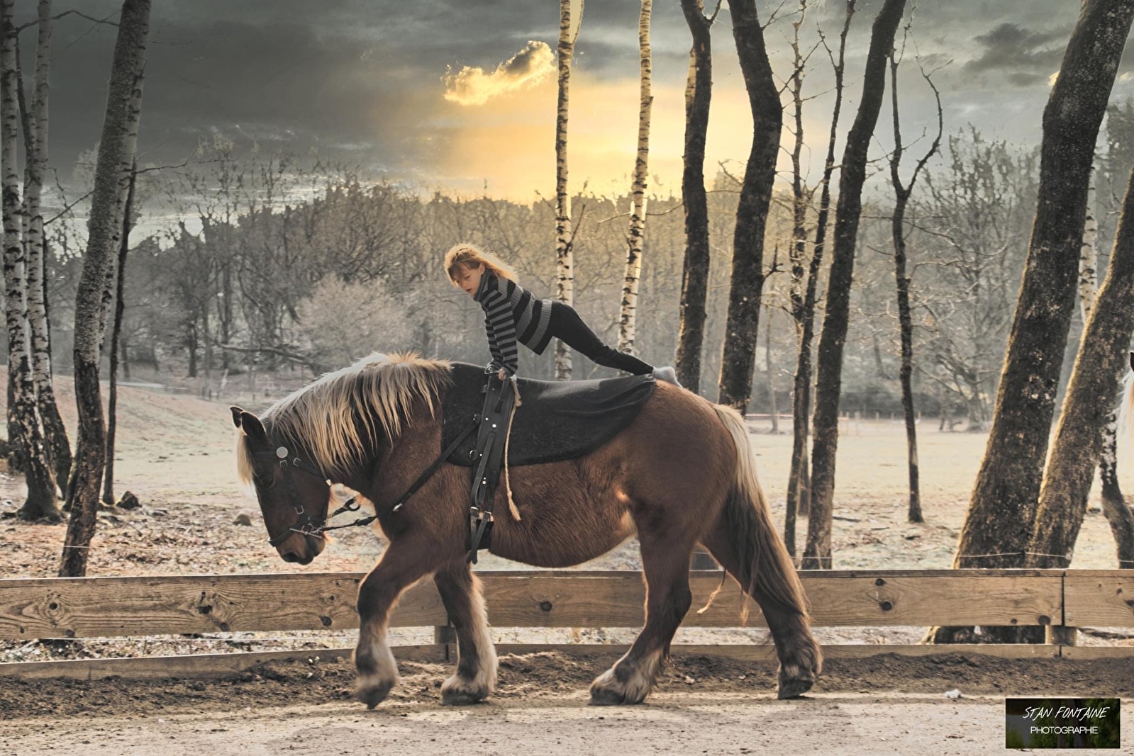 - Au centre équestre avec des cours d’équitation, de voltige, des balades à cheval adaptées à tous âges ainsi que des promenades en attelage avec nos chevaux Comtois.