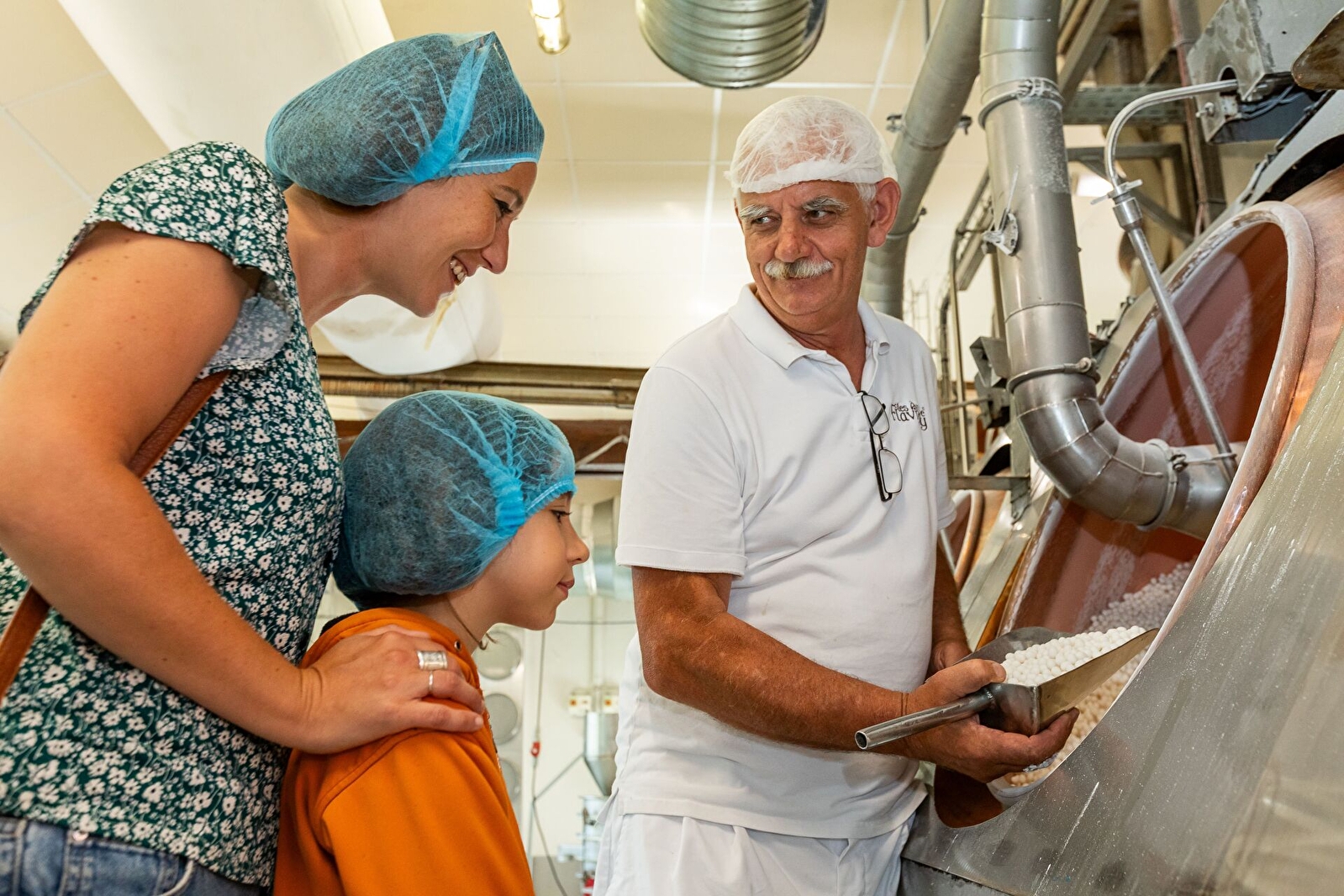 Une fois franchie la porte, vos yeux ne sauront plus quoi regarder, entre la beauté de l’abbaye, l’omniprésence des boîtes et paquets de bonbons, les allers et venues des équipes de la Fabrique. Vous êtes invités à découvrir l'atelier de fabrication actuelle des Anis et les bassines d'Anis, la crypte de l'abbaye, le musée, les anciens ateliers, notre laboratoire des arômes, puis notre boutique et sa dégustation d'Anis.