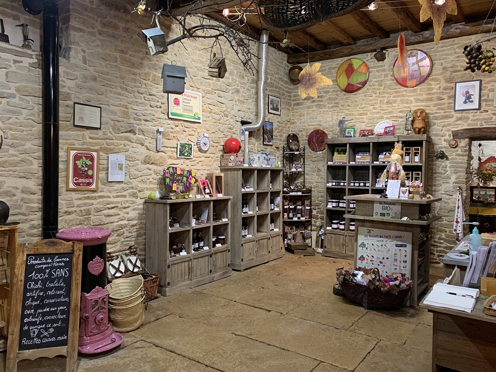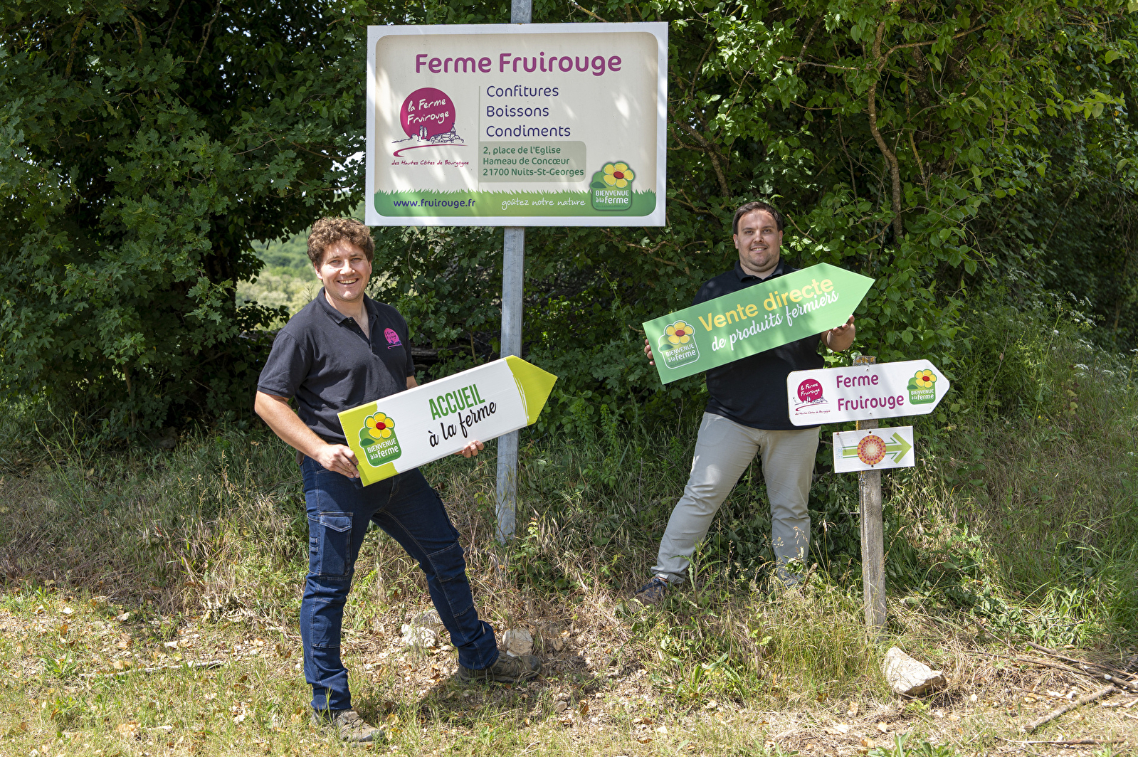 Située en pleine nature, sur le plateau des Hautes-Côtes de Bourgogne, au-dessus du Château du Clos de Vougeot, près du vignoble de la Romanée Conti, la ferme Fruirouge© se trouve à Concœur, hameau de Nuits-Saint-Georges, sur la place de l'église. Cultures de petits fruits rouges en Agriculture Biologique, transformés et commercialisés à la ferme en confitures et beurres de fruits, boissons avec et sans alcool (dont la célèbre Crème de Cassis de Bourgogne IGP Bio), et condiments (vinaigres, moutarde et ketchup au cassis) sans oublier les fameuses pâtes de fruits au cassis.