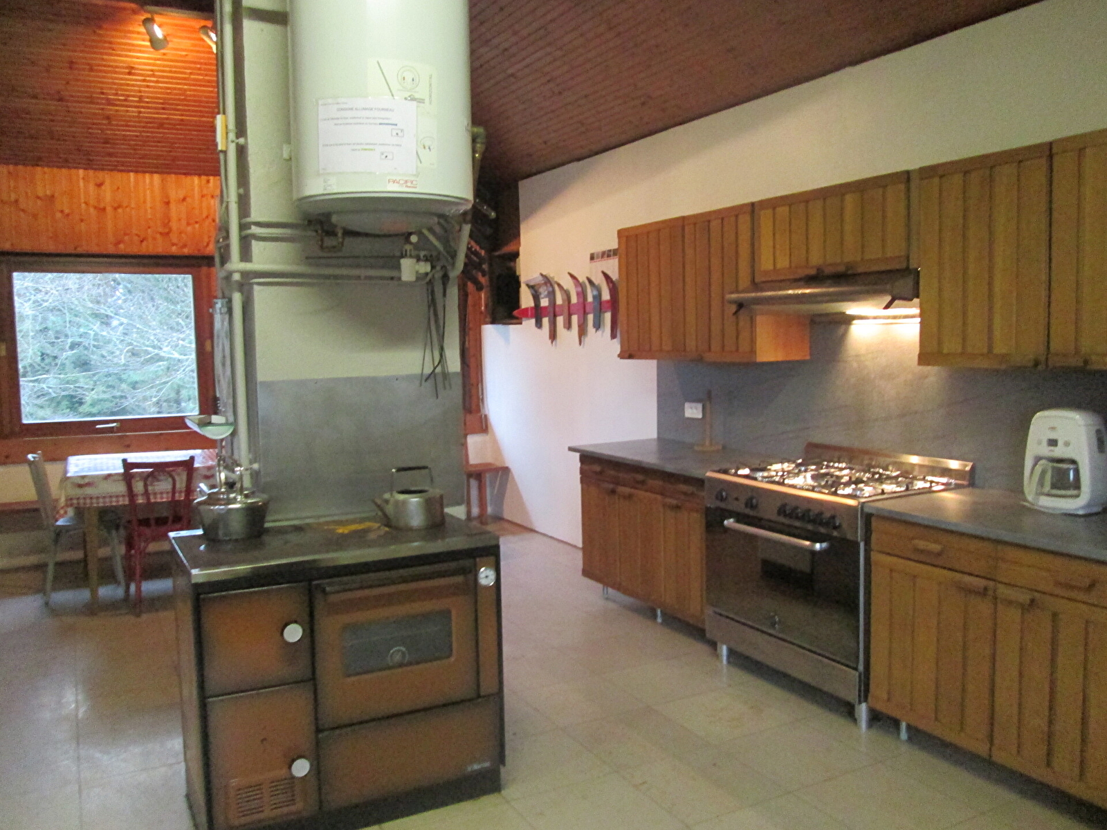 Il dispose d’une grande salle pouvant recevoir 90 personnes, de 19 couchages, d’une cuisine équipée et des sanitaires (WC, lavabos et douches)
