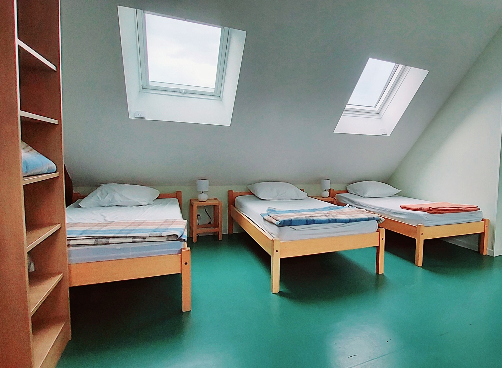 Conçu pour accueillir un seul grand groupe à la fois, notre gîte de séjour municipal peut loger jusqu'à 40 personnes grâce à ses nombreuses chambres et ses grands espaces équipés (cuisine, salle de restauration, salle détente, salle de réunion, cour fermée...). Le Wifi permet également de maintenir des activités professionnelles à distance, idéal pour des séminaires et autres vacances studieuses !