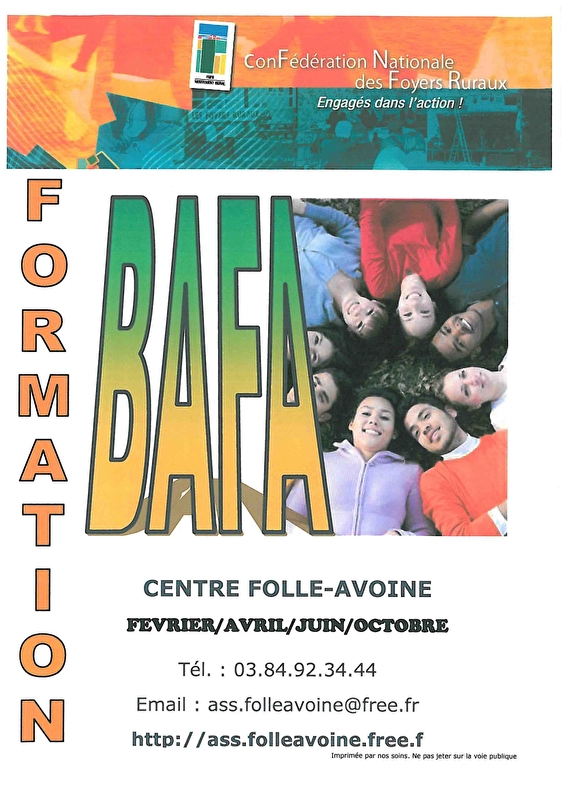 Formation au BAFA février, avril, juin, octobre.