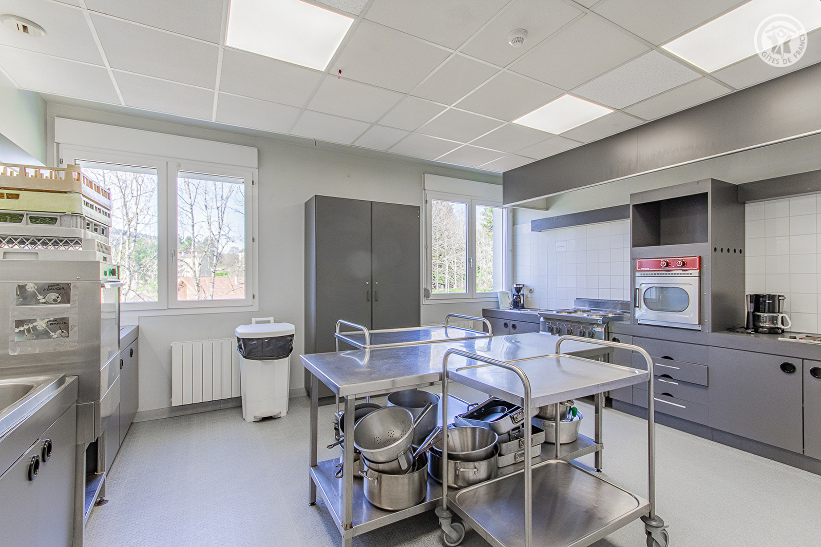 Composition : Bâtiment comprenant 2 gîtes de groupe + cantine du collège + divers logements de fonction (totale indépendance). Wifi. Chauffage électrique. Gîte au 1er étage : cuisine professionnelle, séjour/salle à manger, salle d'activité/salon TV, bloc sanitaire avec 4 douches + bloc sanitaire avec 4 WCs, 12 chambres soit : 4 chambres de 1 lit 1 p. / 2 chambres de 2 lits 1 p. / 2 chambres de 1 lit 2 p. / 1 chambre de 4 lits 1 p. (2 x 2 sup.) / 1 chambre de 6 lits 1 p. (dont 2 x 2 sup.) / 2 chambres de 8 lits 1 p. (4 x 2 sup.). Lits en 90x190cm. Salle de réunion payante sur demande. Kit bébé 2€/jour. Jardin clos commun aux 2 gîtes. Parking public gratuit sur place. Commerces & service sur place.
