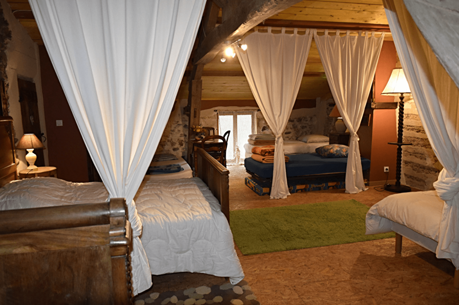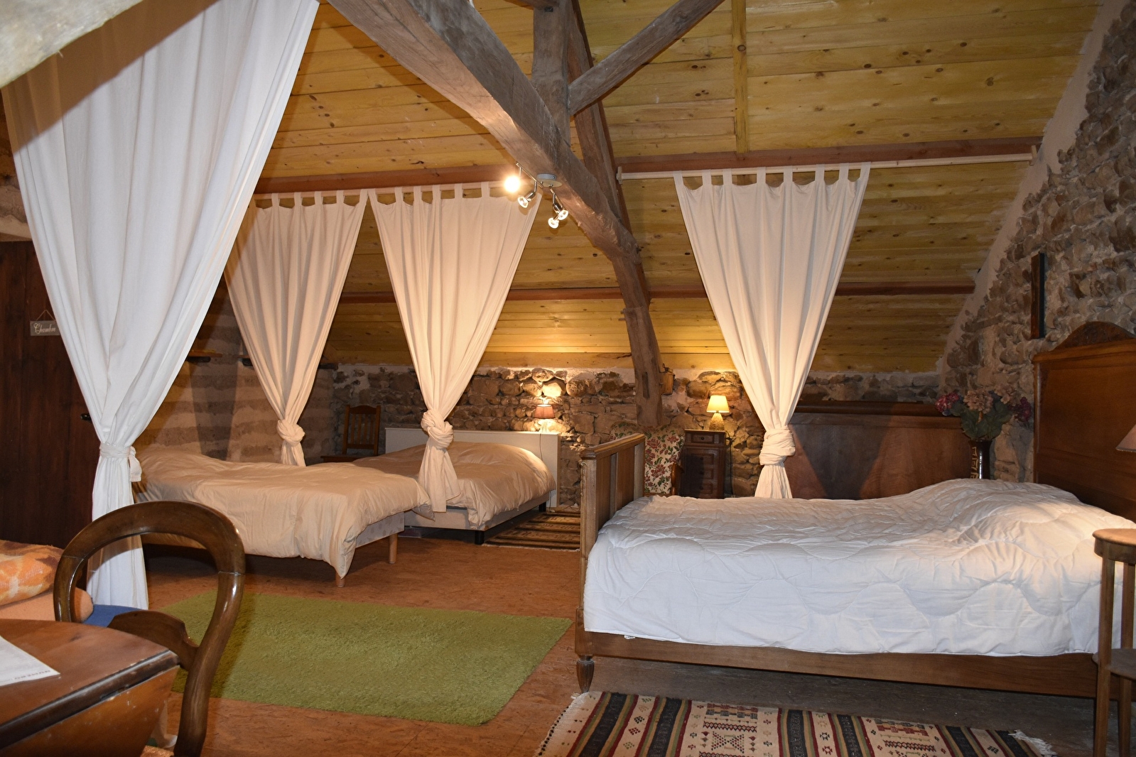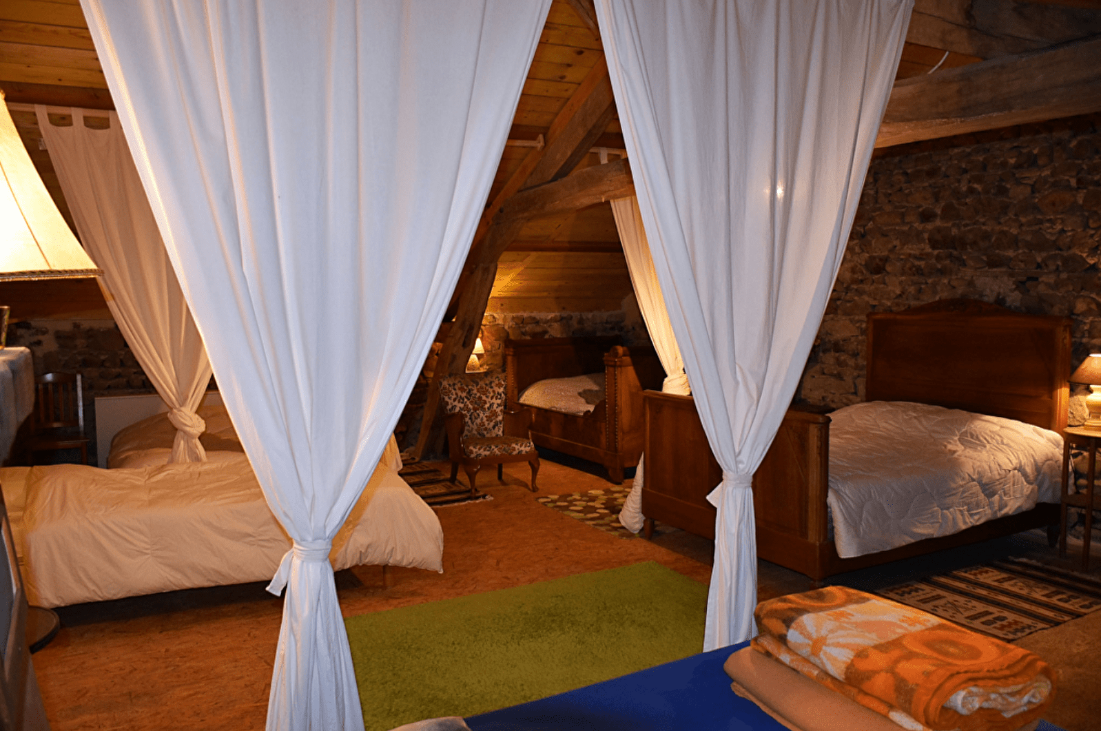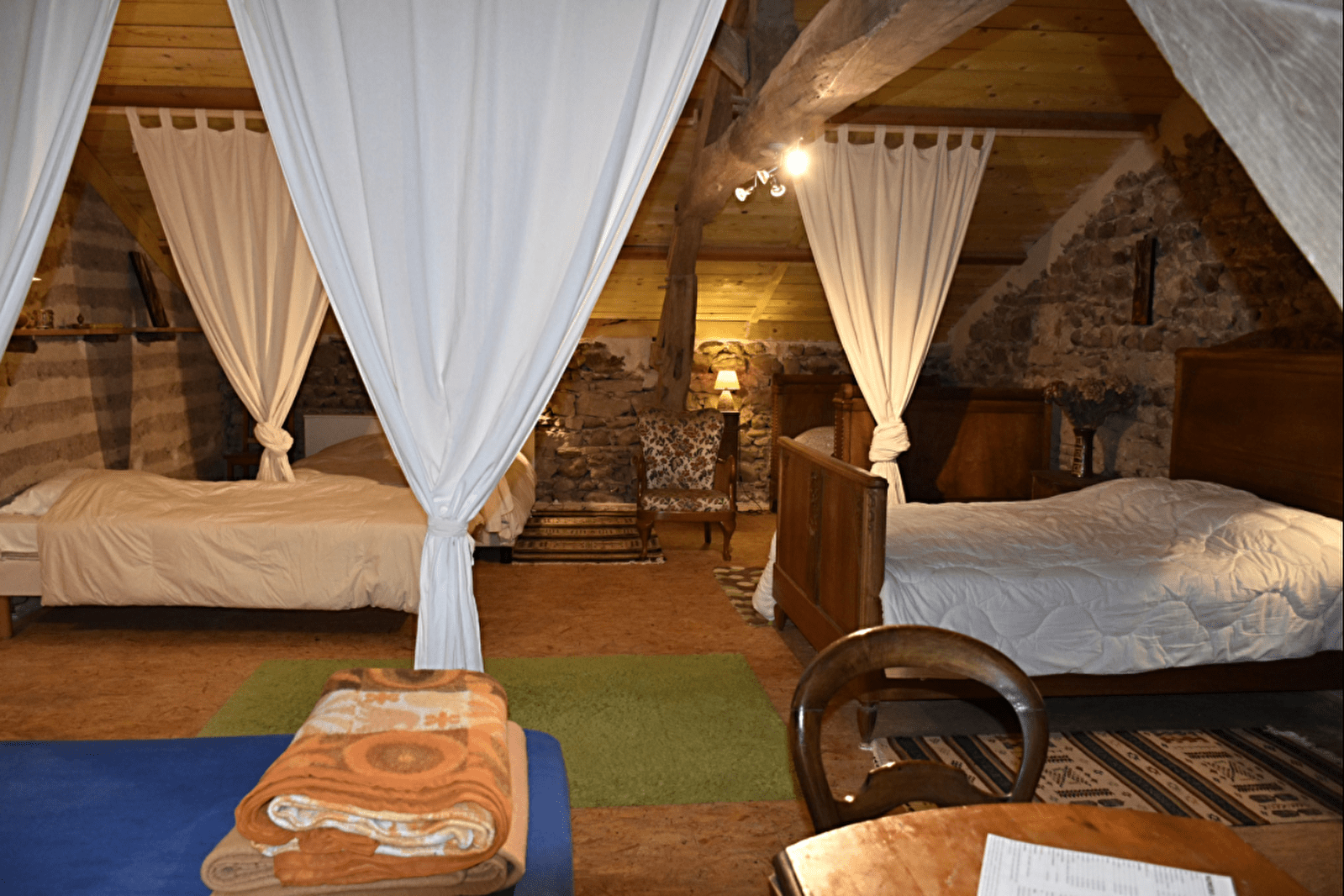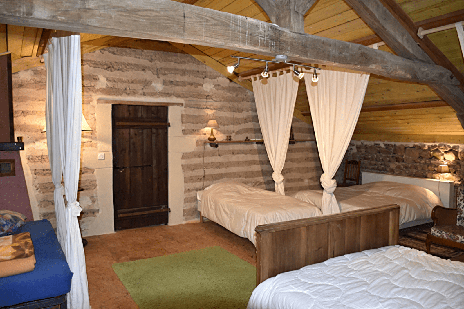 Installé dans l'ancienne grange, le gîte dortoir peut héberger des stagiaires, des randonneurs, un groupe familial, des cyclistes, ou autres, pour 1 ou plusieurs nuits. Il est équipé de : 2 lits de 140, 6 lits de 90. Dans une chambre attenante au dortoir est installé un lit de 90. Des couvertures, couettes et oreillers sont à votre disposition. La salle d'eau, spacieuse, de couleur bleue est aménagée avec 2 douches,2 lavabos et de toilettes. Une cuisine aménagée est à votre disposition.