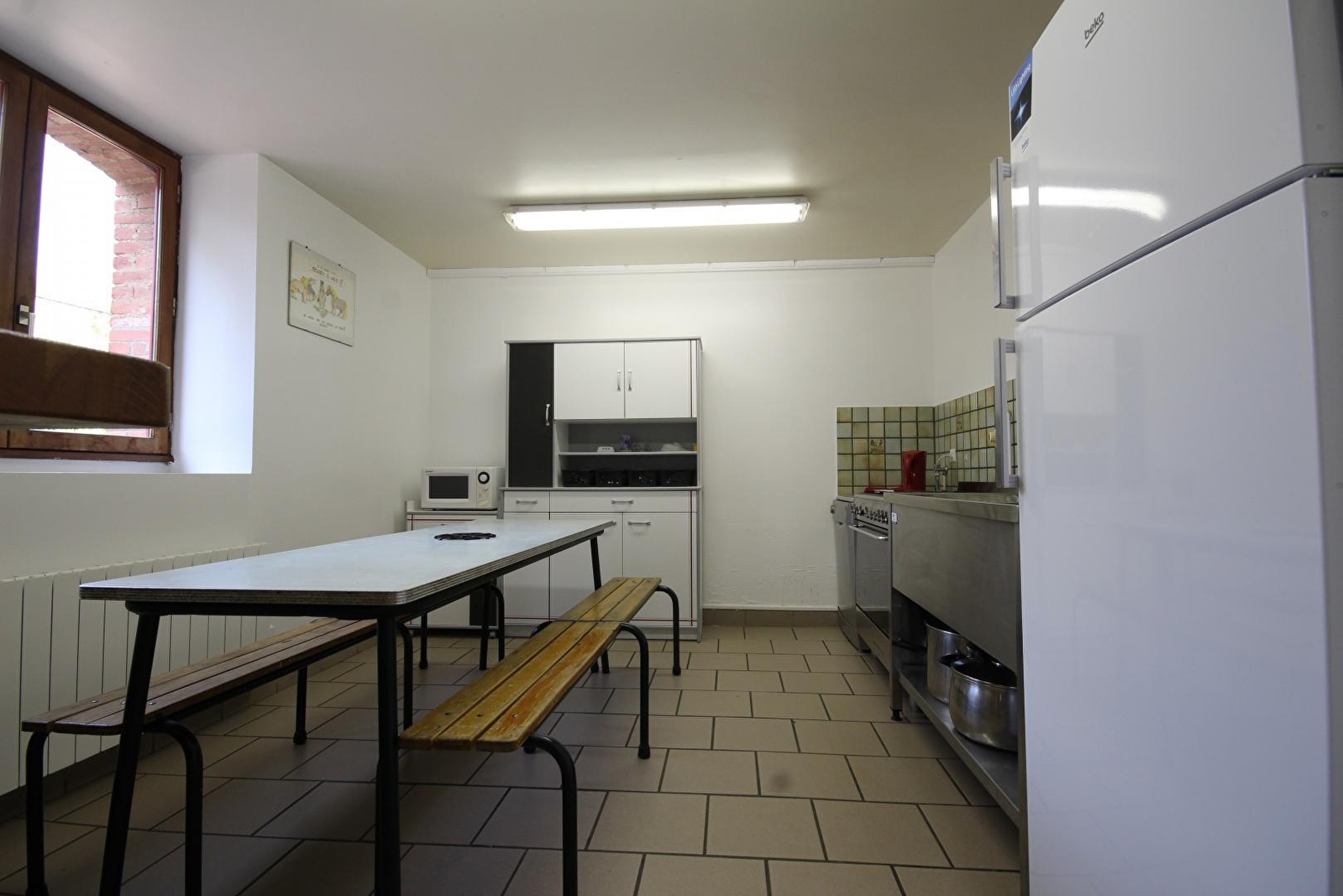 Salle commune avec cuisine (équipée en vaisselle). Vestiaire.
