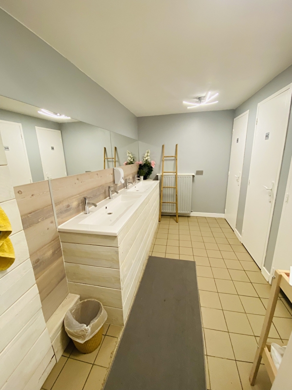 Jolie décoration, pièces de vie spacieuses. Rez-de-chaussée : salle de restauration 50 places, cuisine professionnelle, une autre pièce modulable (Karaoké, soirée dansante, jeux, etc), 2 chambres pour 8 personnes, 2 salles d'eau dont une accessible aux personnes handicapées (3 douches et 4 wc).