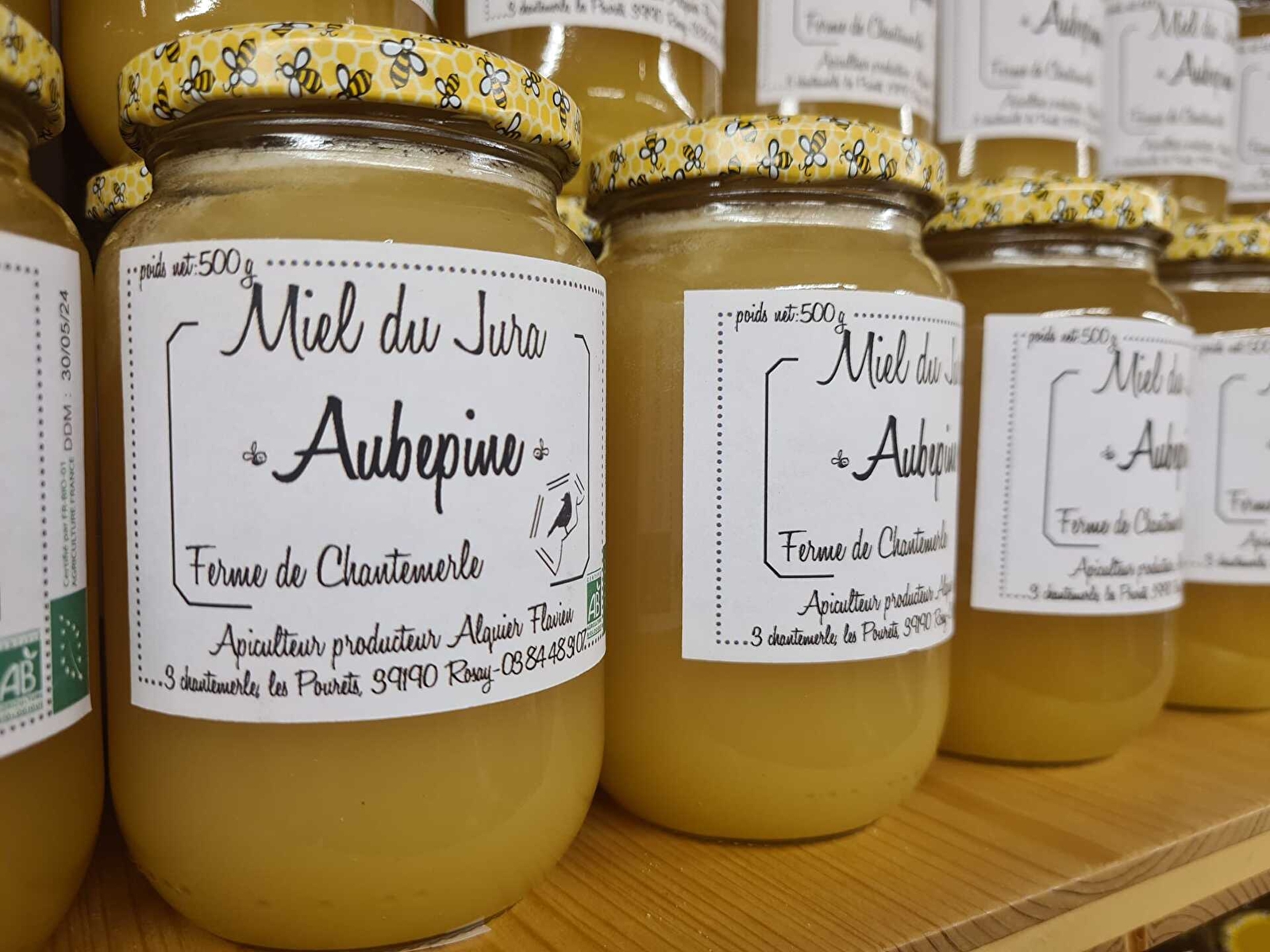 Les 250 ruches sont installées sur des espaces variés en petite montagne et un peu plus loin dans le Haut-Jura : vergers, prairies maigres, pâturages gras, taillis, haies, bois et forêts. Une diversité de miels vous est ainsi proposée : aubépine, tilleuls, montagne...