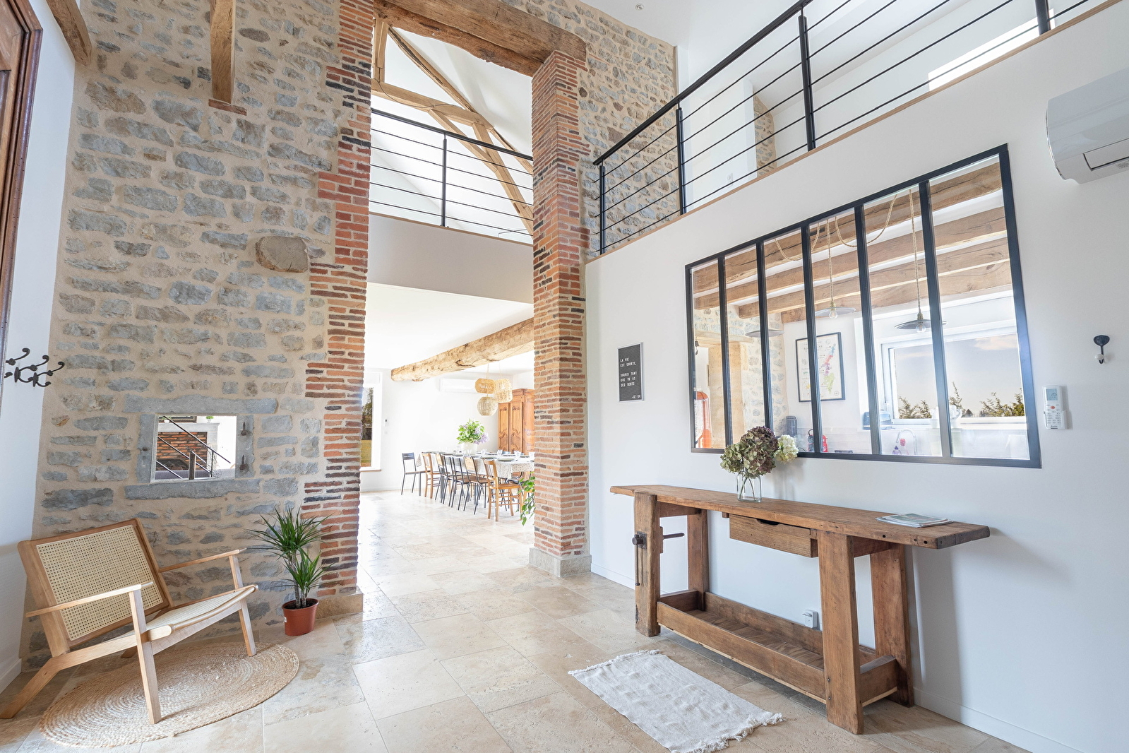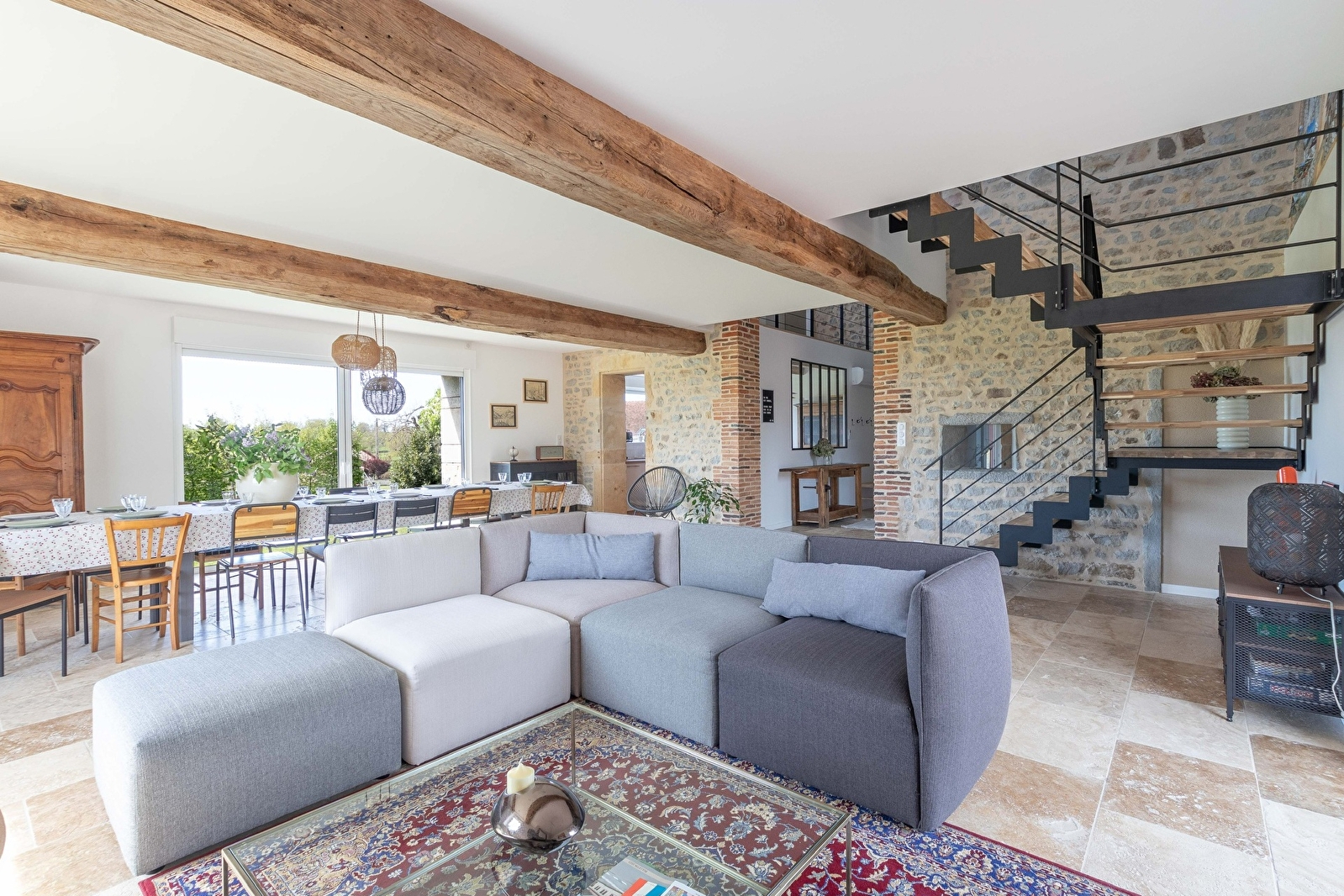 Au RDC, une vaste pièce de vie réunit salon et salle à manger, à proximité d'une cuisine entièrement équipée.