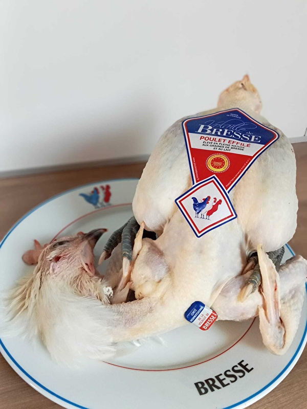 Poulets de bresse rôtis à la broche tous les samedis, sur commande.