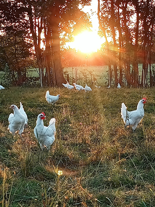 Mes volailles sont élevées dans le respect du cahier des charges de l'AOP : en plein air pendant 120 jours et nourries avec des céréales et du lait produits en Bresse. C'est un véritable savoir faire que je perdure sur les terres familiales en étant la 4e génération d'éleveur.