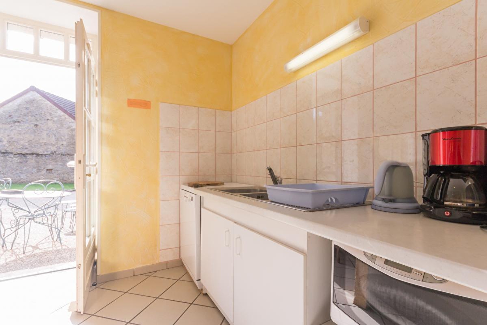Ancienne école de filles réaménagée en gîte de groupes, située dans le village d'Henry Vincenot, avec château du XIVe s. Rez-de-chaussée : salle à manger de 50 m² avec coin-cuisine et salon. 1 chambre (2 lits 90) avec salle d'eau et WC, accessible aux personnes handicapées. 2 WC indépendants. 1e étage : 1 chambre avec 8 lits 90 et 1 chambre avec 5 lits. 2 WC séparés. 2 salles d'eau. Grande terrasse. Cour et pelouse sur 600 m² clos de mur. Location à la nuit : 345 € (uniquement hors vacances scolaires et en dernière minute). Chauffage compris. Draps jetables et ménage en fin de séjour inclus dans les tarifs. Bureau de la Mairie attenant. Boulangerie dans le village. Golf de Chailly-sur-Armançon à 14 km, karting à 10 km. Institut muséographique et promenade en bateau électrique 50 places à 9 km, village médiéval de Châteauneuf à 5 km. Lac de Panthier 2 km. Salle des fêtes : 160 €/jour + chauffage (à réserver auprès de la Mairie directement). Gîte pour 15 pers. maximum y compris les enfants.