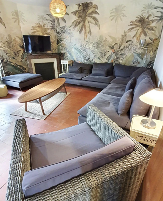 Complètement privative la maison est composée sur 2 bâtiments indépendants pour 28/30 pax : la Maison 14/15 personnes et la Verrière 10/14 personnes. Cour entièrement sécurisée pour vos enfants car fermée par un portail ; gravillonnée, spacieuse (+/- 100M²) et lumineuse pour prendre vos repas en extérieur en saison. Deux grands Barbecues au charbon sont à votre disposition ainsi qu'un porche semi-ouvert dans la cour avec petit coin d’herbe ombragé. Dans la Maison, 5 chambres dont 2 lofts, 3 chambres, 3 salles d'eau. Dans le deuxième bâtiment, la Verrière, 4 chambres, 2 salles de douche.