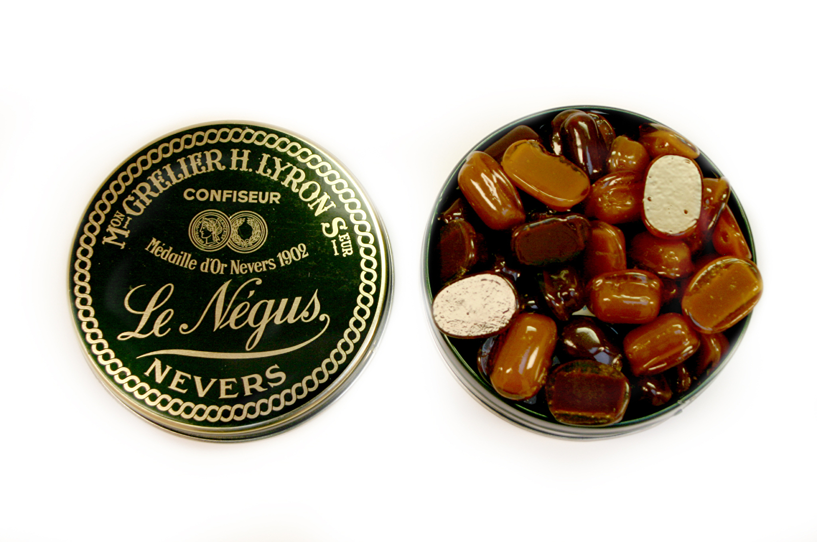 Le Négus est un caramel mou au chocolat enrobé dans un sucre cuit. Il a été créé en 1902 par la Maison Grelier à la suite de la visite officielle à Nevers du souverain d'Ethiopie : le Négus. En effet il était de tradition de créer en chaque fin d'année un nouveau bonbon auquel on donnait le nom d'un événement ou d'un fait marquant qui s'était déroulé au cours de l'année. La confiserie Lyron, dépositaire de la marque depuis 1909 continue la même fabrication.