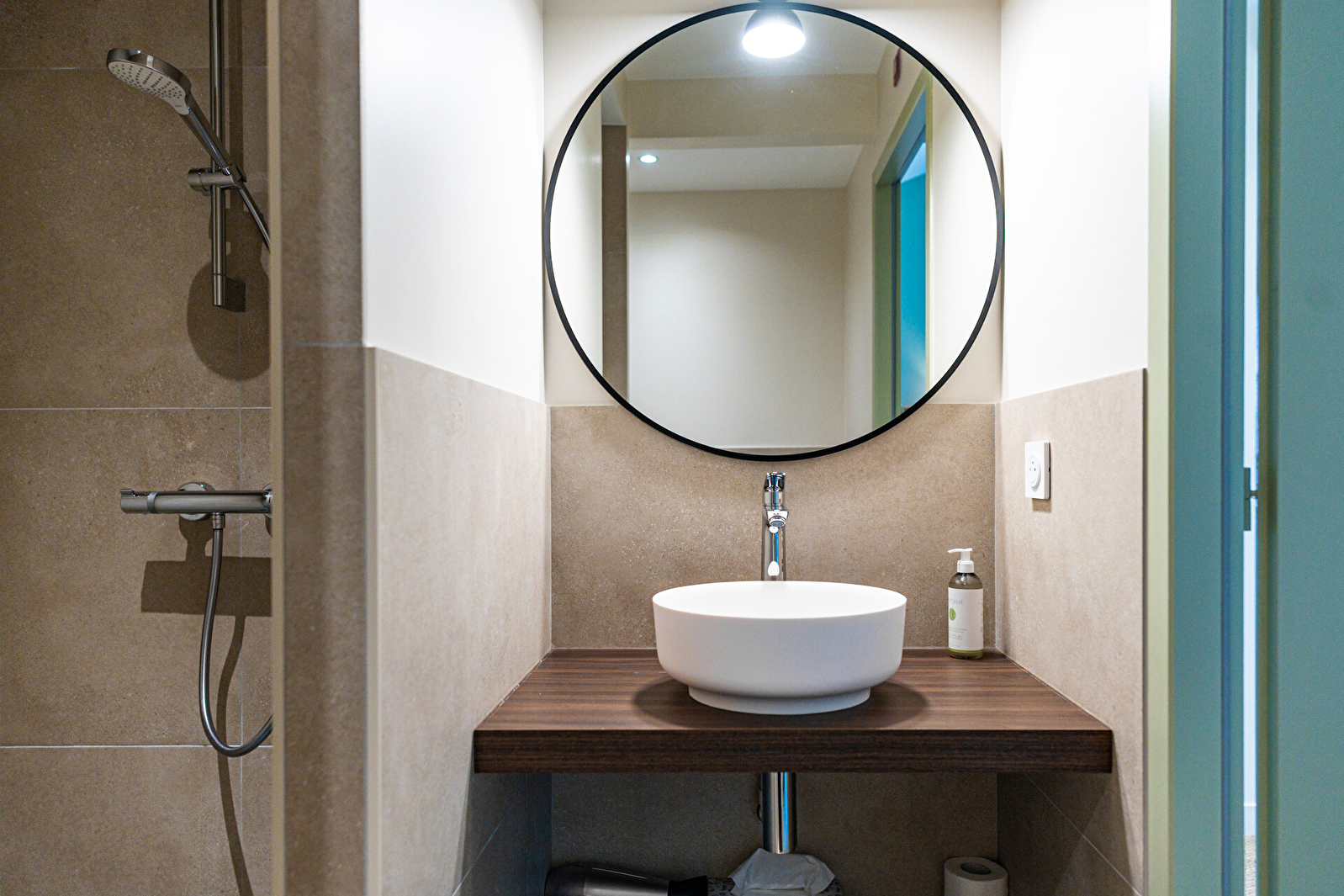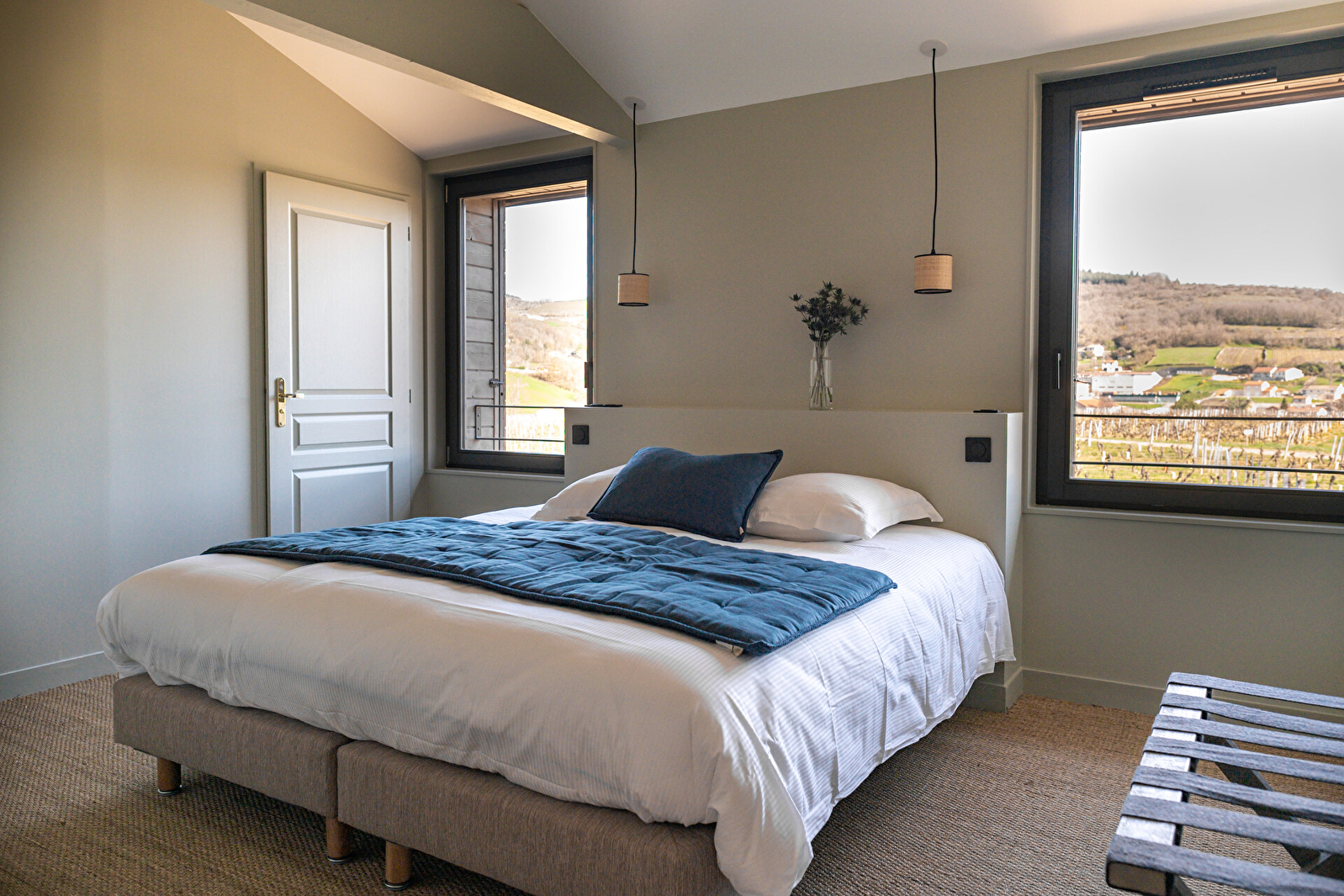 - 7 chambres doubles à l'étage pour 1 à 2 personnes. Chaque chambre possède sa propre salle de bain.