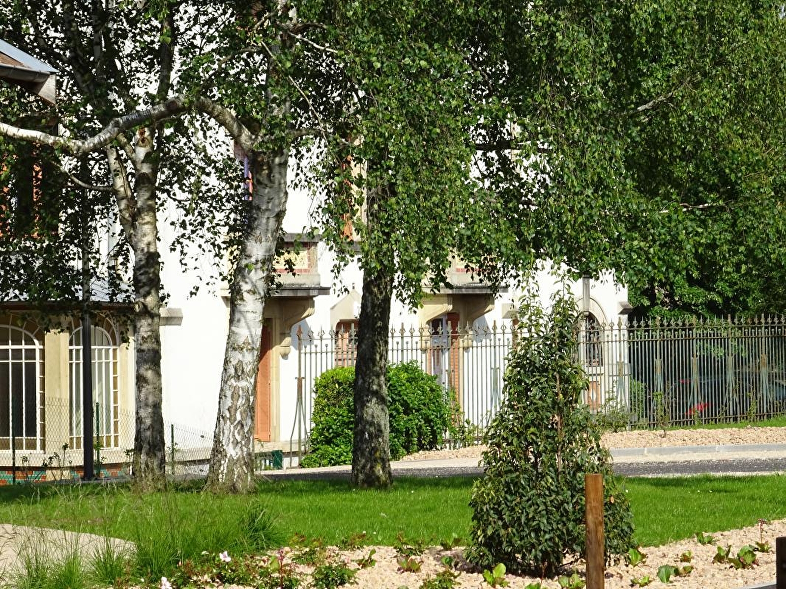 Composition : Maison individuelle. Wifi. Chauffage central gaz. Rdc : cuisine professionnelle (+ arrière-cuisine), séjour-salon, séjour-salon TV. 1er étage : 5 chambres (2 avec 2 lits 1 p. / 6 lits 1 p. dont 2 x 2 superposés / 5 lits 1 p. dont 2 superposés) dont 3 avec salle d'eau privative (douche/Wc), salle de bain (baignoire), salle d'eau (douche/Wc). 2ème étage : 5 chambres dont 1 aménagée en studio avec kitchenette & 2 chambres séparées (3 avec 2 lits 1 p. / 4 lits 1 p. dont 2 superposés / lit 2 p. 140x190cm + 2 lits 1 p. 90x190cm) avec salle d'eau privative (douche/Wc). Lits en 90x200cm (sauf chambre-studio). Terrasse abritée + terrasse sur cour (gravier) + terrain clos (cour + jardin) + local vélos + parking privés. Supermarché 1 km. Commodités 4.5 km.