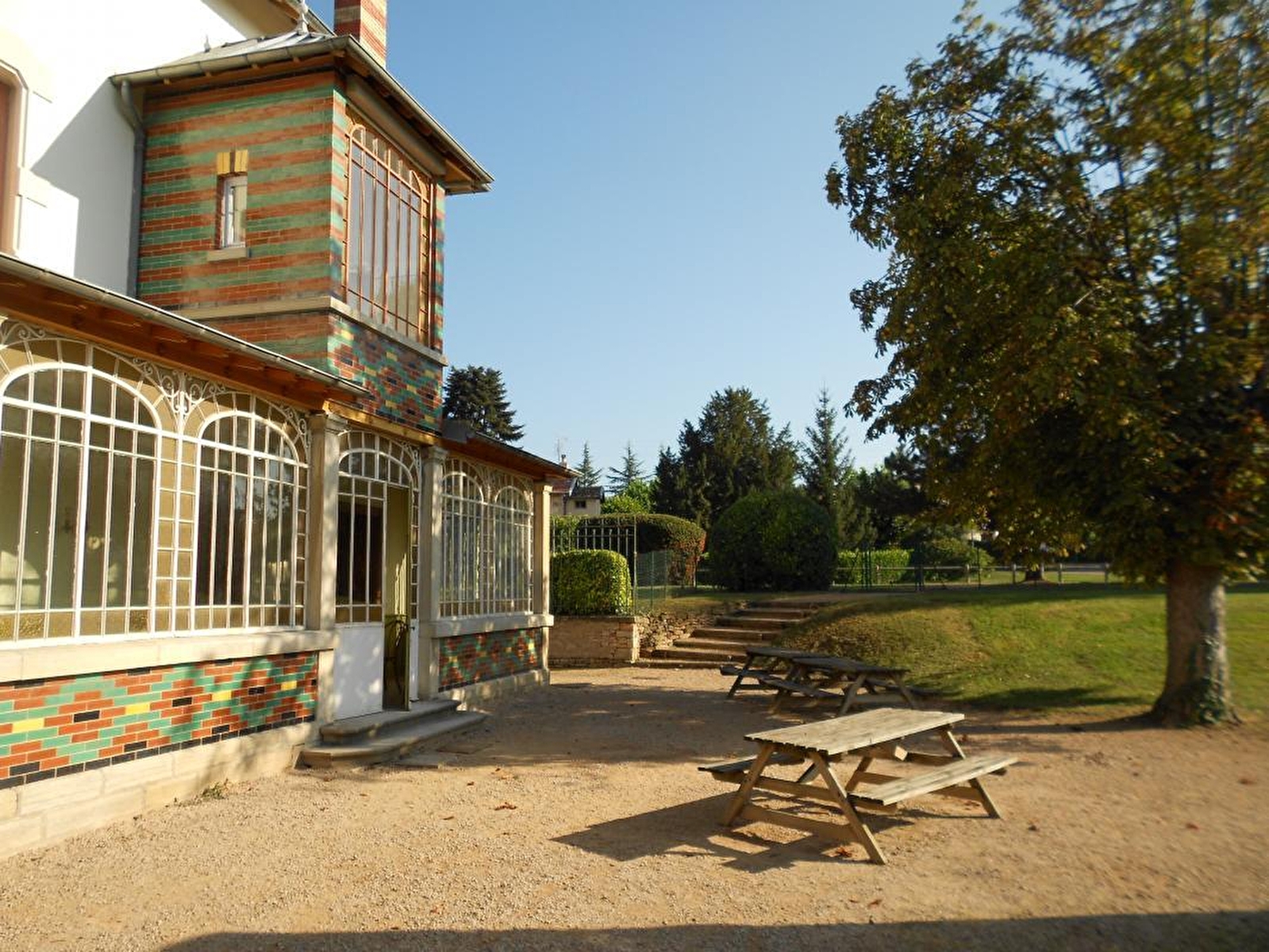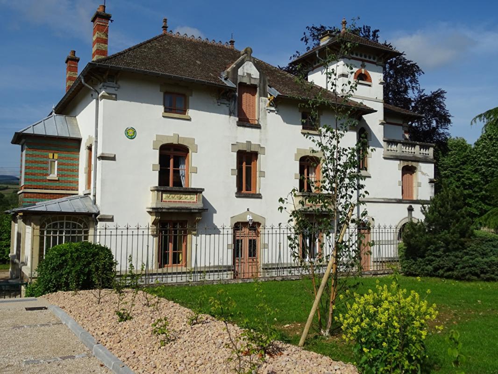 Très élégante demeure bourgeoise de caractère d'inspiration basque du début XXe pétrie d'histoire - l'une des premières villas dotée d'équipements "modernes" de la région - intégralement restaurée en gîte de groupe géré par les "Vignerons des Terres Secrètes", dignes héritiers de l'historique mouvement coopératif Mâconnais (visite & dégustation offerte sur réservation au sein de leur cave & boutique voisine). Calme & tranquillité "en lisière" de vignobles, aux confins d'un pittoresque village viticole. En pleine campagne mâconnaise vallonnée, au creux d'un sublime écrin paysagé préservé. Gîte de bon confort. Ultra spacieux. Ambiance un brin "vintage", sublimée par l'âme totalement dépaysante des lieux (hall de réception au magistral volume "cathédrale", carreaux de ciment, superbes moulures aux plafonds avec rosaces, boiseries, portes moulurées, imposant escalier central en bois avec coursives & garde-corps, poutres & charpente d'origine...). Magnifique large terrasse abritée sous une historique verrière en mode "jardin d'hiver". Terrain clos comprenant une grande cour (terrain de pétanque naturel) dotée d'un vaste espace terrasse, accolée à un agréable jardin (avec filet de badminton-volley & babyfoot).