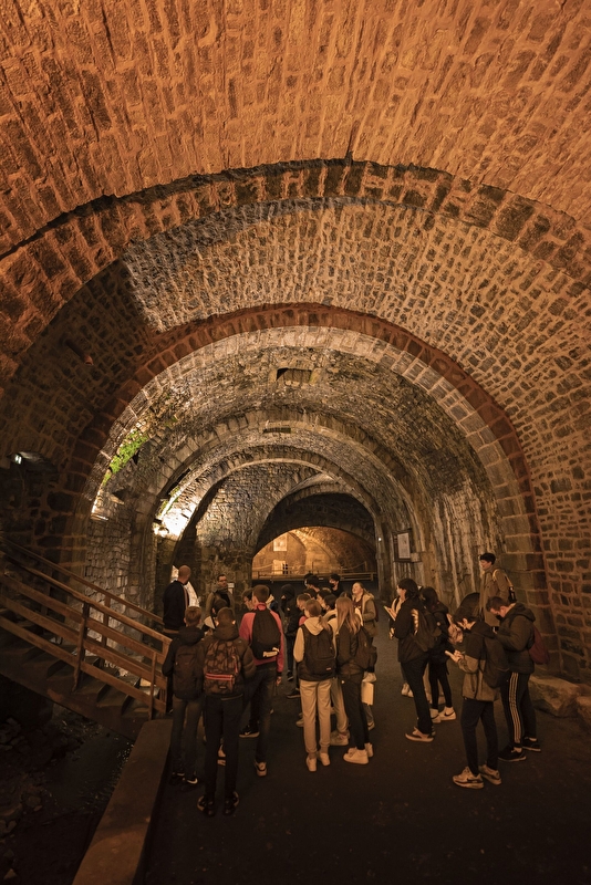 Grande Saline : au fil de la visite, le médiateur fait voyager les élèves dans l’histoire et l’architecture d’un site exceptionnel. Les travailleurs du sel, les sauniers, ont produit à la Grande Saline l’Or Blanc pendant plus de 1200 ans ! Au cours du temps, l’ingéniosité humaine a permis la mise en place de remarquables systèmes techniques, encore opérationnels aujourd'hui, pour puiser l’eau salée et la faire évaporer dans d'imposantes poêles à sel. Les élèves découvrent l’industrie du sel ignigène (en chauffant l’eau salée). Ils appréhendent la longévité extraordinaire de cette saline à travers des repères chronologiques et observent les spécificités techniques des mécanismes employés pour puiser l’eau salée et la chauffer.