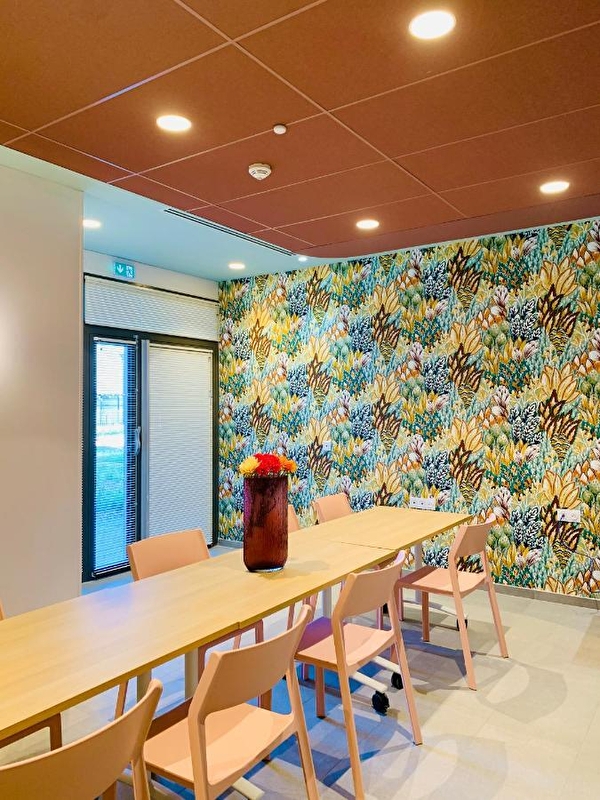 Résidence avec espaces communs pensés pour le bien-être des seniors.